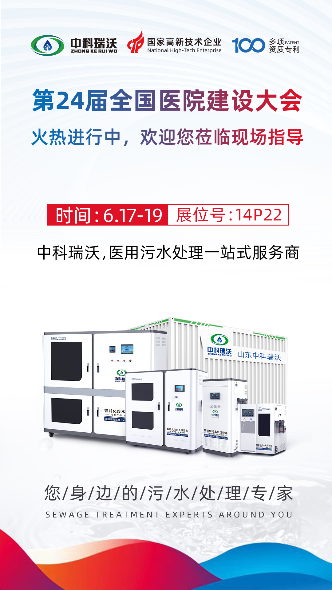 此次展會(huì)為期三天,6月17-6月19號(hào)您都可以蒞臨全國(guó)醫(yī)院建設(shè)大會(huì)中科瑞沃展位,我們將為您提供專(zhuān)業(yè)系統(tǒng)化的醫(yī)用污水解決方案!