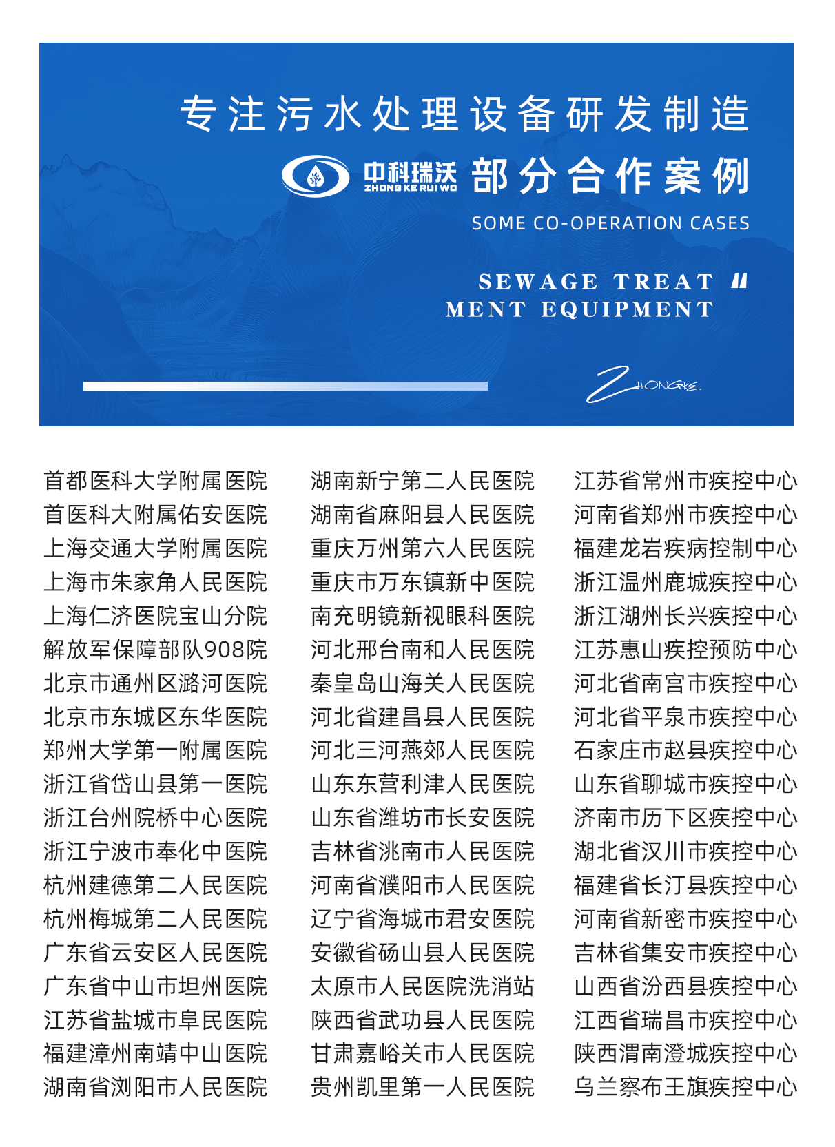 中科瑞沃,上萬(wàn)平生產(chǎn)基地,只為醫(yī)用污水處理設(shè)備質(zhì)量保障,售后無(wú)憂(yōu)!