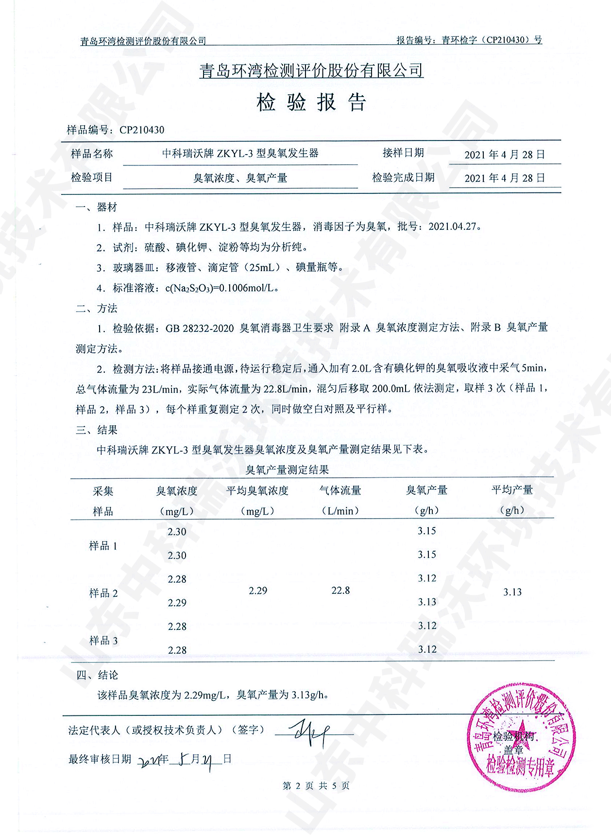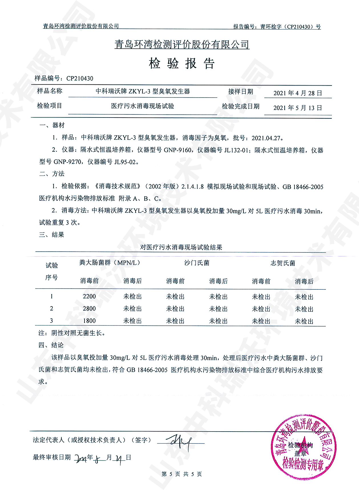 醫(yī)療污水處理設(shè)備檢測(cè)報(bào)告~臭氧消毒