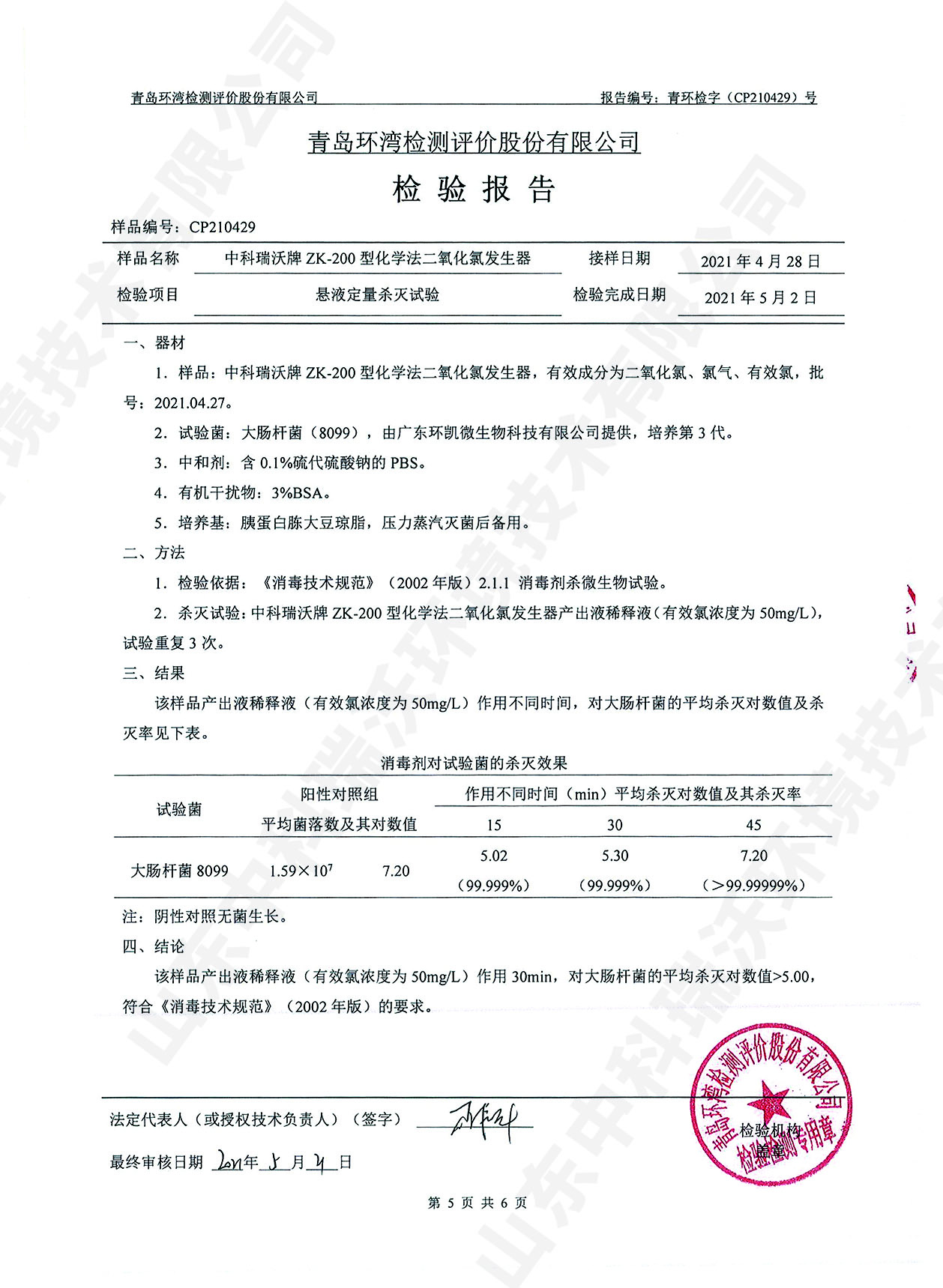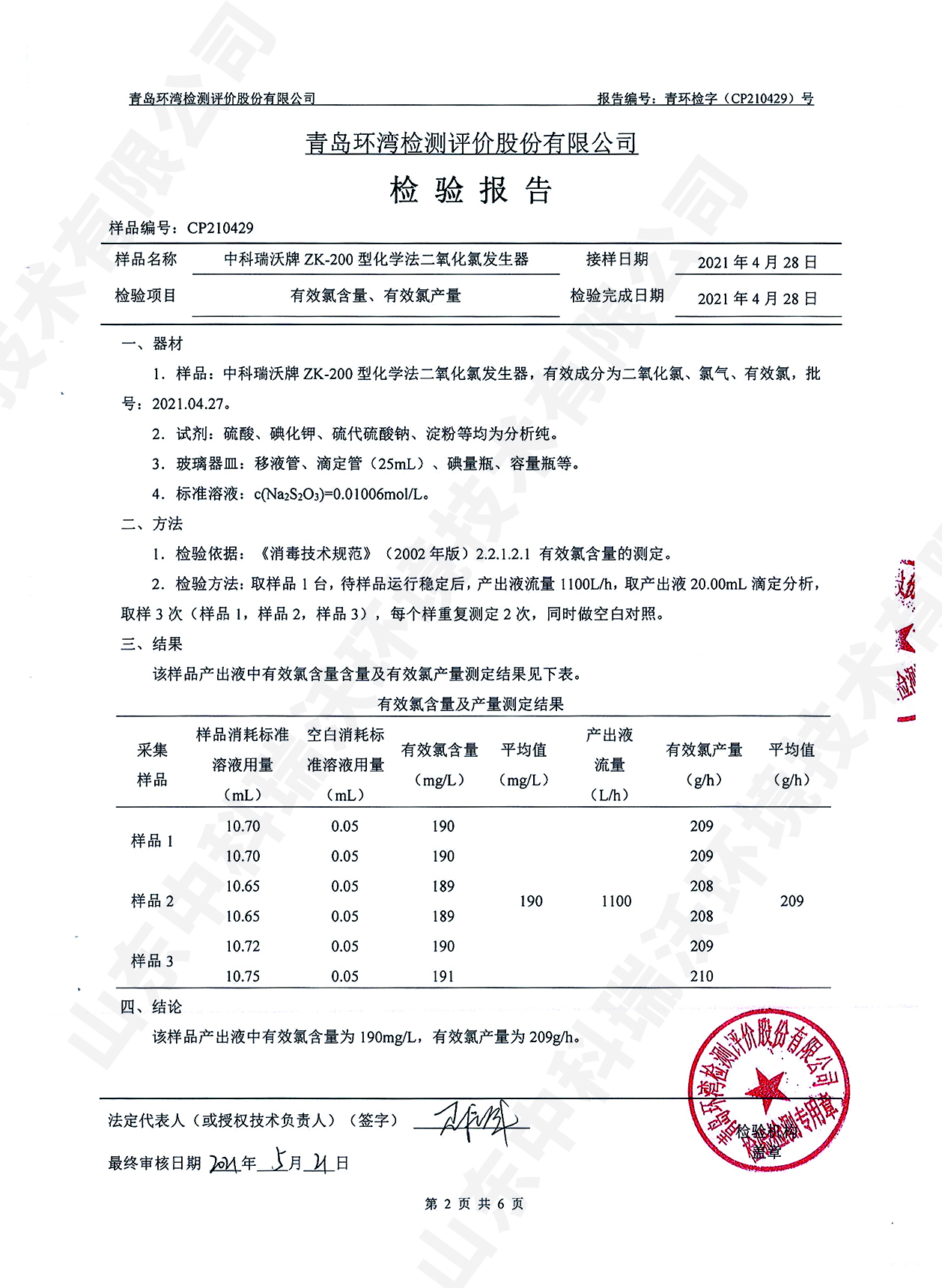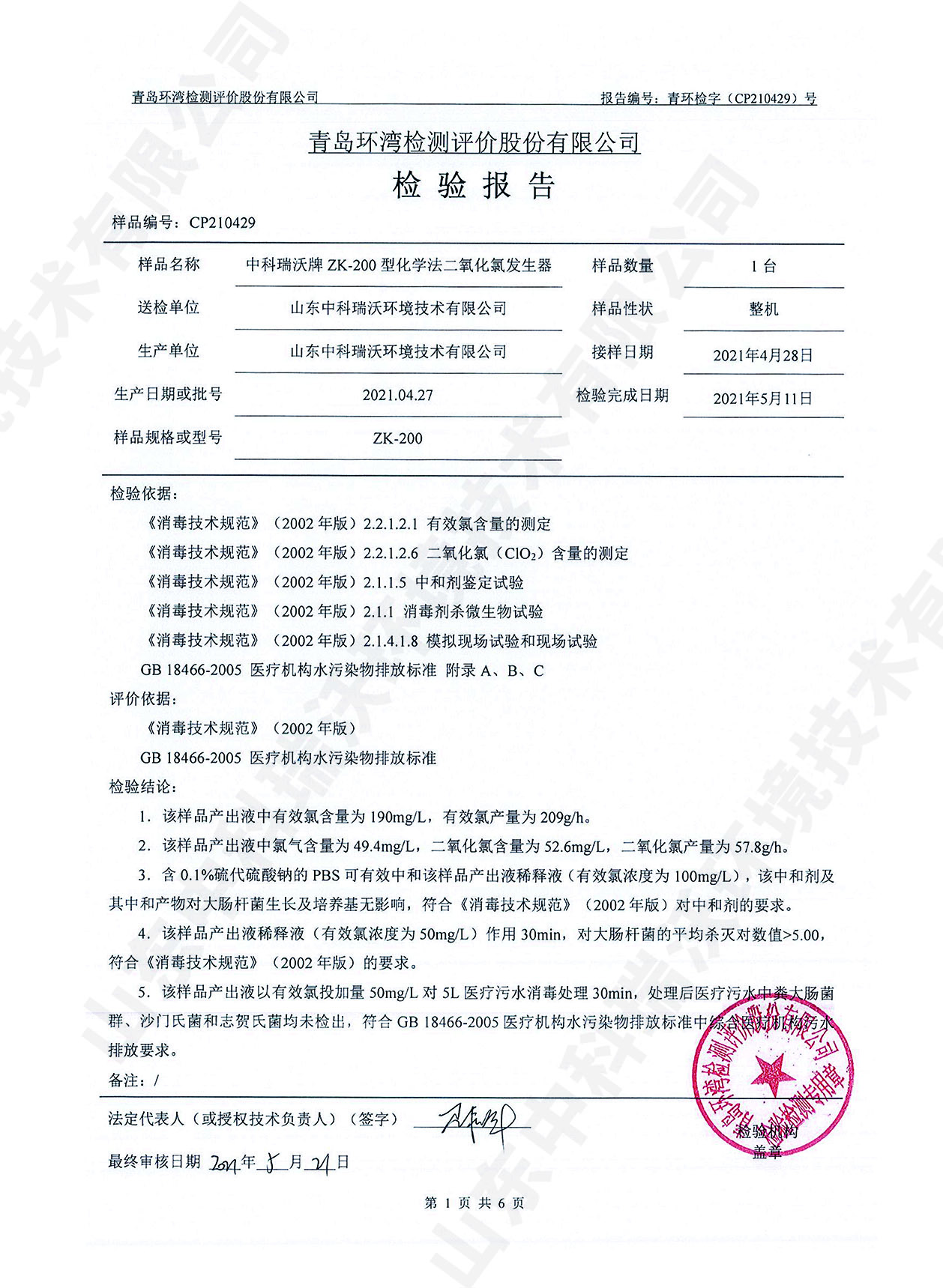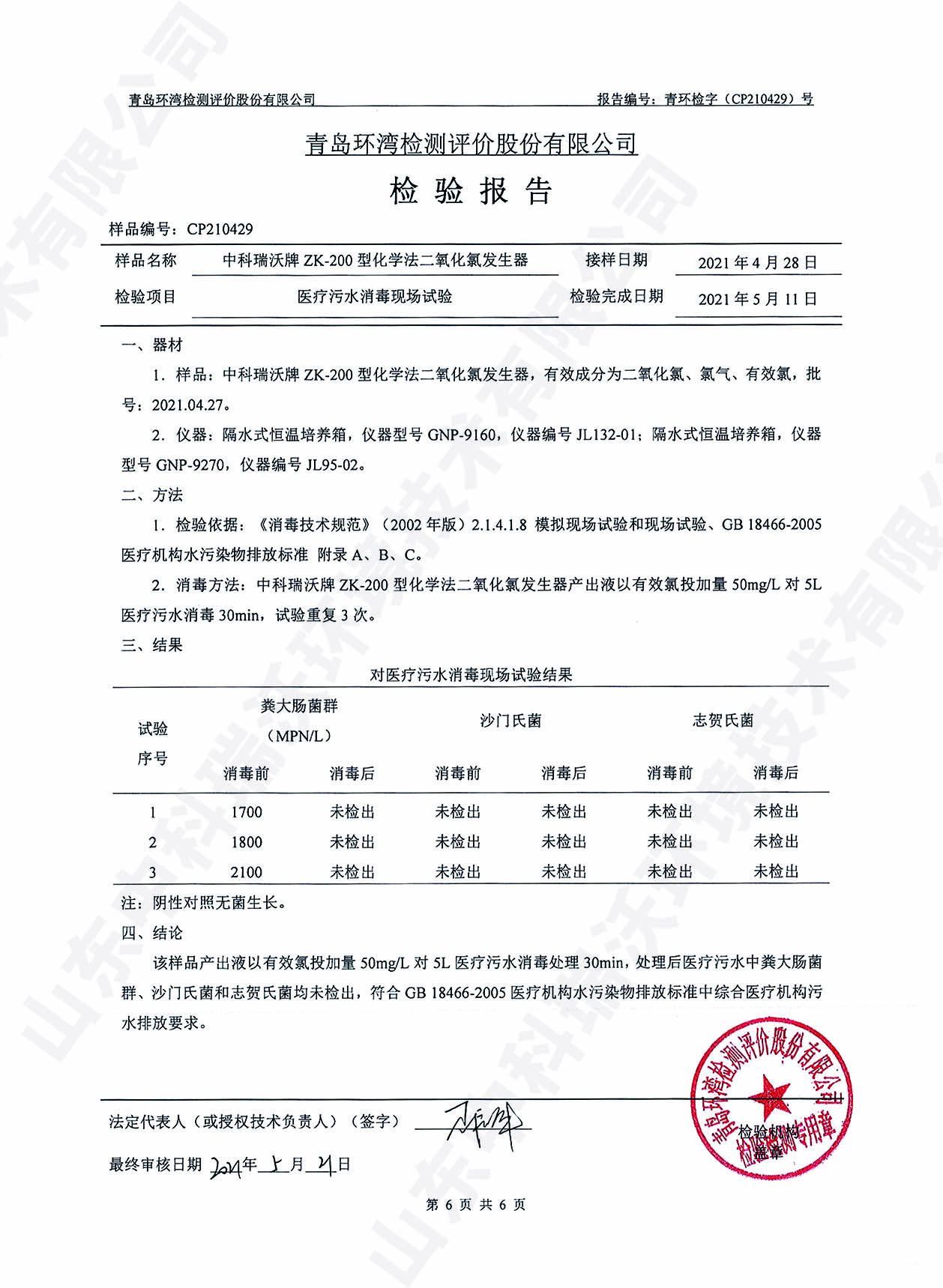 醫(yī)療污水處理設備檢測報告~二氧化氯消毒