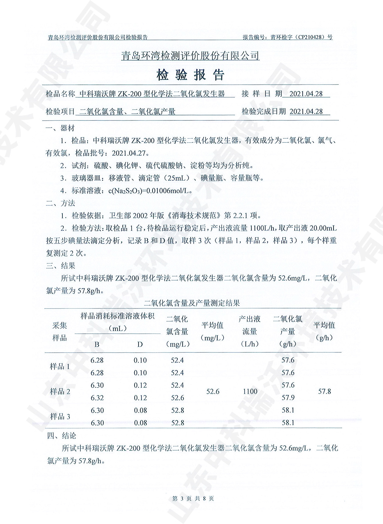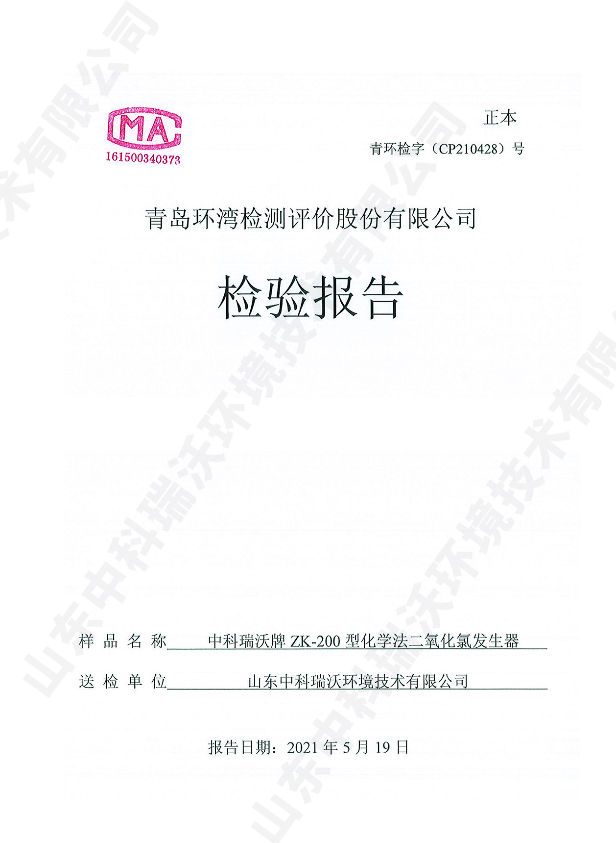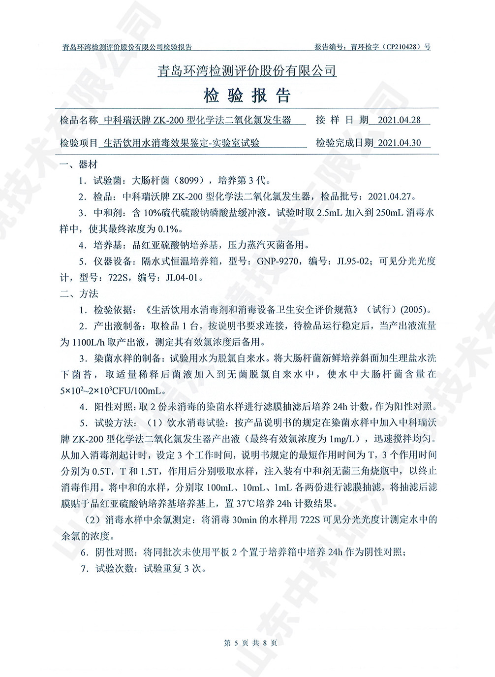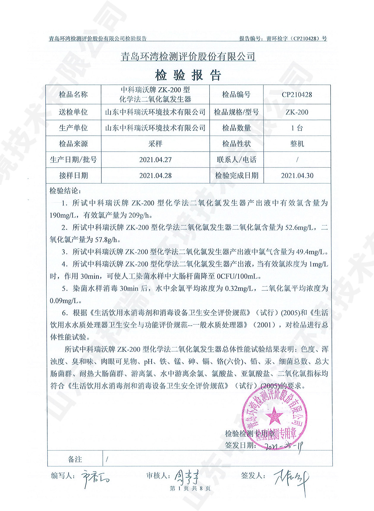 飲水消毒設備檢測報告~次氯酸鈉消毒